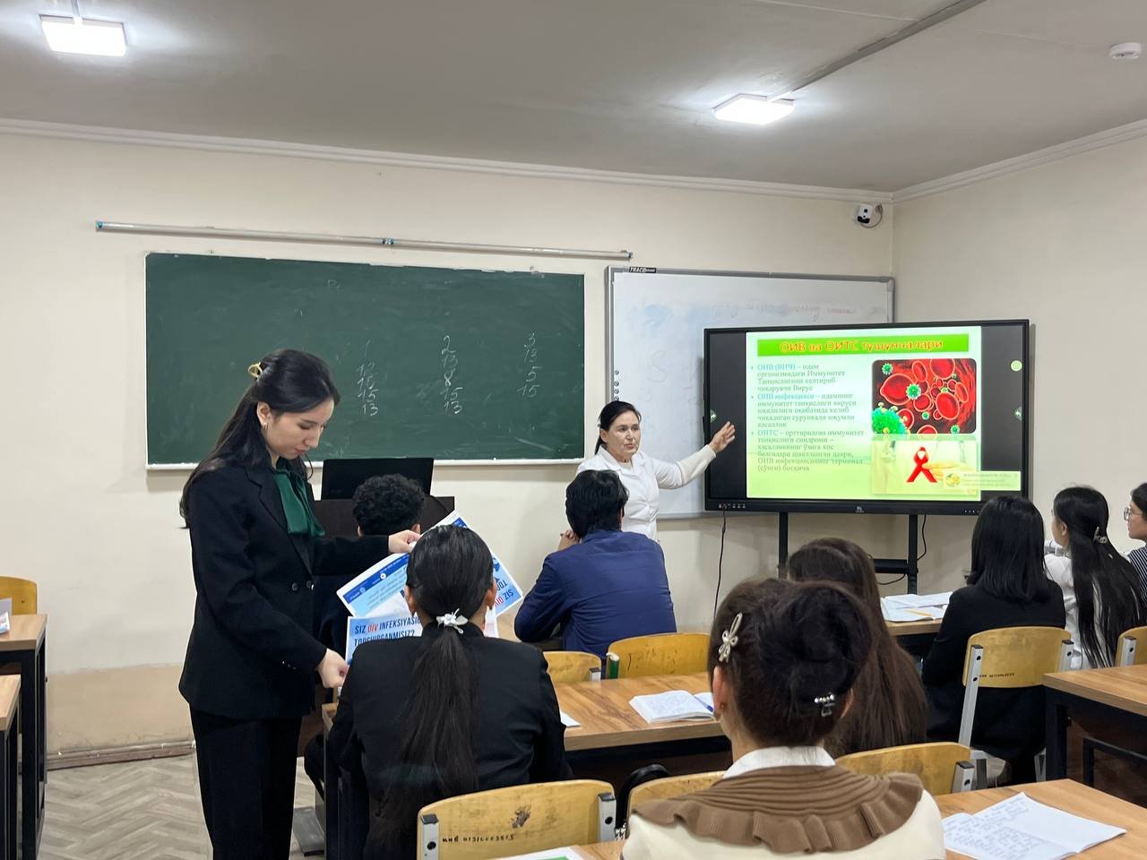 O’zbekiston Respublikasi Vazirlar Mahkamasining 2022-yil 21 fevraldagi “O’zbekiston Respublikasining odamning immunitet tanqisligi virusi keltirib chiqaradigan kasallik (OIV infeksiyasi) tarqalishiga qarshi kurashish bo’yicha yoshlar faolligida olib boriladigan tizimli targ’ibot tadbirlari konsepsiyasini tasdiqlash to’g’risida” gi 84-sonli Qarori ijrosi yuzasidan 2026-yil 24-mart sanasida viloyat OITSga qarshi kurashish markazi mutaxassislari tomonidan Urganch davlat pedogogika universitetining Filologiya fakulteti talabari o’rtasida OIV infeksiyasi profilaktikasi mavzusida targ'ibot tadbiri o'tkazildi.